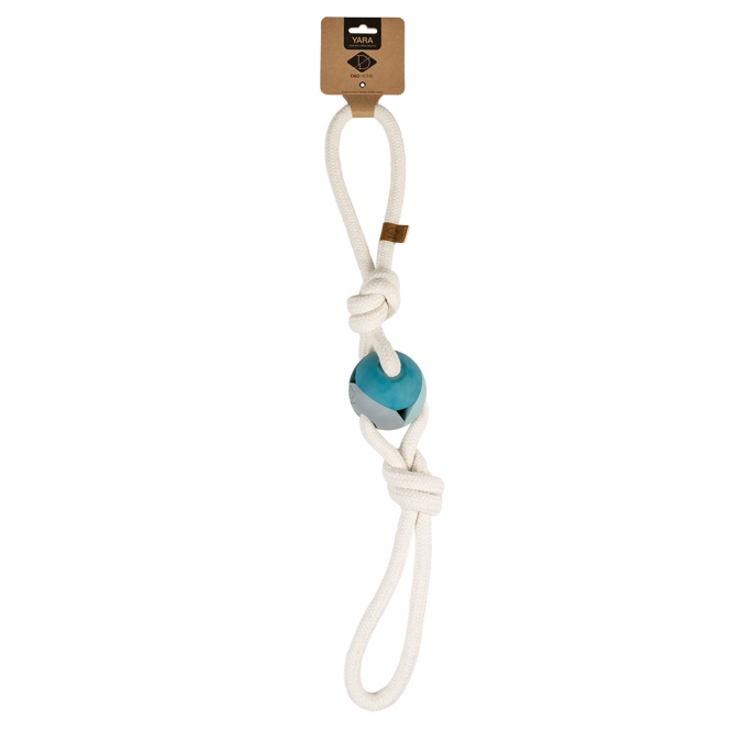 Das D&D Hundespielzeug Yara ist ein Hundespielzeug aus robustem Naturkautschuk in trendigen Farben. Es ist außerdem mit einem Baumwollseil ausgestattet. Das Baumwollseil ist ein beliebtes Kaumaterial für Hunde und pflegt zudem Zähne und Zahnfleisch. Dieses Spielzeug ist ideal für Apportier- und Zerrspiele.