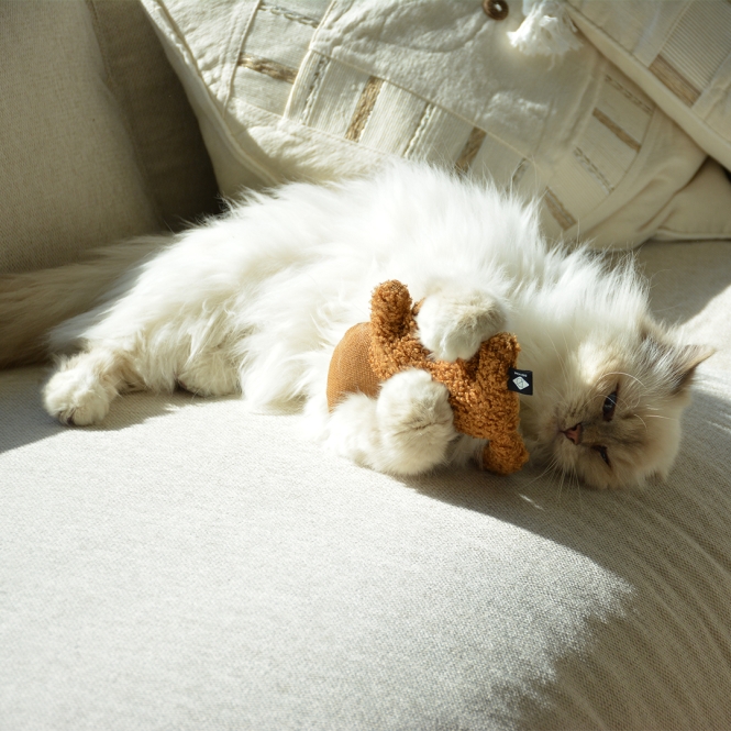 • Happy Cat-Design mit Teddyfell und Baumwollstoff