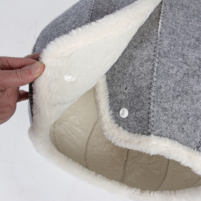 - Außenseite aus Polyesterfilz, Innenseite aus weichem Plüsch