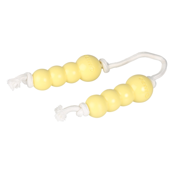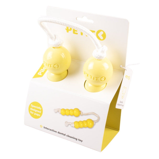 Das Welpenspielzeug Petit Pilou ist ein lustiges Seil- und Kauspielzeug für Welpen oder kleine Hunde. Pilou macht das gemeinsame Spielen zu einer echten Herausforderung: Wer lässt zuerst los? Wie weit kann man Pilou werfen? Die Kombination aus Naturkautschuk und Seil sorgt für den ultimativen Kauspaß. Das Seil reinigt die Zähne und der Gummi lindert die Schmerzen beim Zahnen oder Zahnwechsel und hilft dem Hund, sich zu beruhigen.