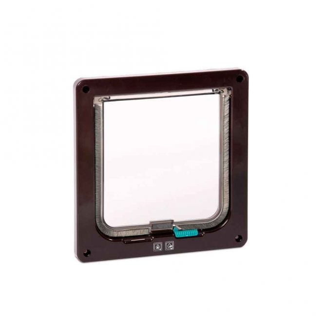 Sie bestehen aus einem Rahmen, einem Scharnier sowie einer horizontal befestigten Klappe. Letztgenannte wird vom Tier mit dem Kopf nach vorn geschoben, um dann durch die Öffnung zu gelangen. So kann die Katze selbständig und sicher zwischen Haus und Außenbereich wechseln. Ein Magnetverschluss und eine Bürstendichtung machen die Katzentür wetterfest und zugluftsicher. Dank des Verschlusssystems kann zudem gesteuert werden, ob die Katze beliebig hinaus- und hineingehen kann oder ob die Nutzung eingeschränkt wird. Die mechanische Katzentür mit 2-Wege-Verschluss bietet die Wahl zwischen geöffnet (hinaus und hinein) und geschlossen.