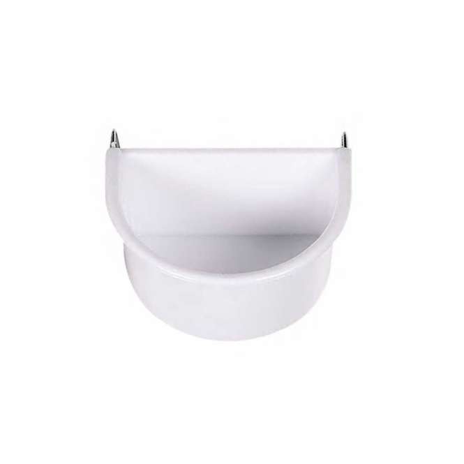 Halbrunder Kunststoffnapf für Vögel mit Metallhaken zum Einhängen in das Käfig- oder Volierengitter.