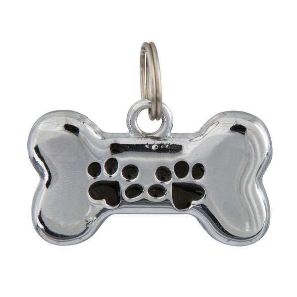 Der hübsche Adressanhänger besteht aus Metall und ist auf der Rückseite mit einem Kugelschreiber oder Permanentmarker beschreibbar. Der Adressanhänger hat die Form eines Knochens mit zwei bunten Pfotenabdrücken auf der Vorderseite. Er ist sowohl praktisch, als auch ein edles Accessoire für Ihren Vierbeiner.